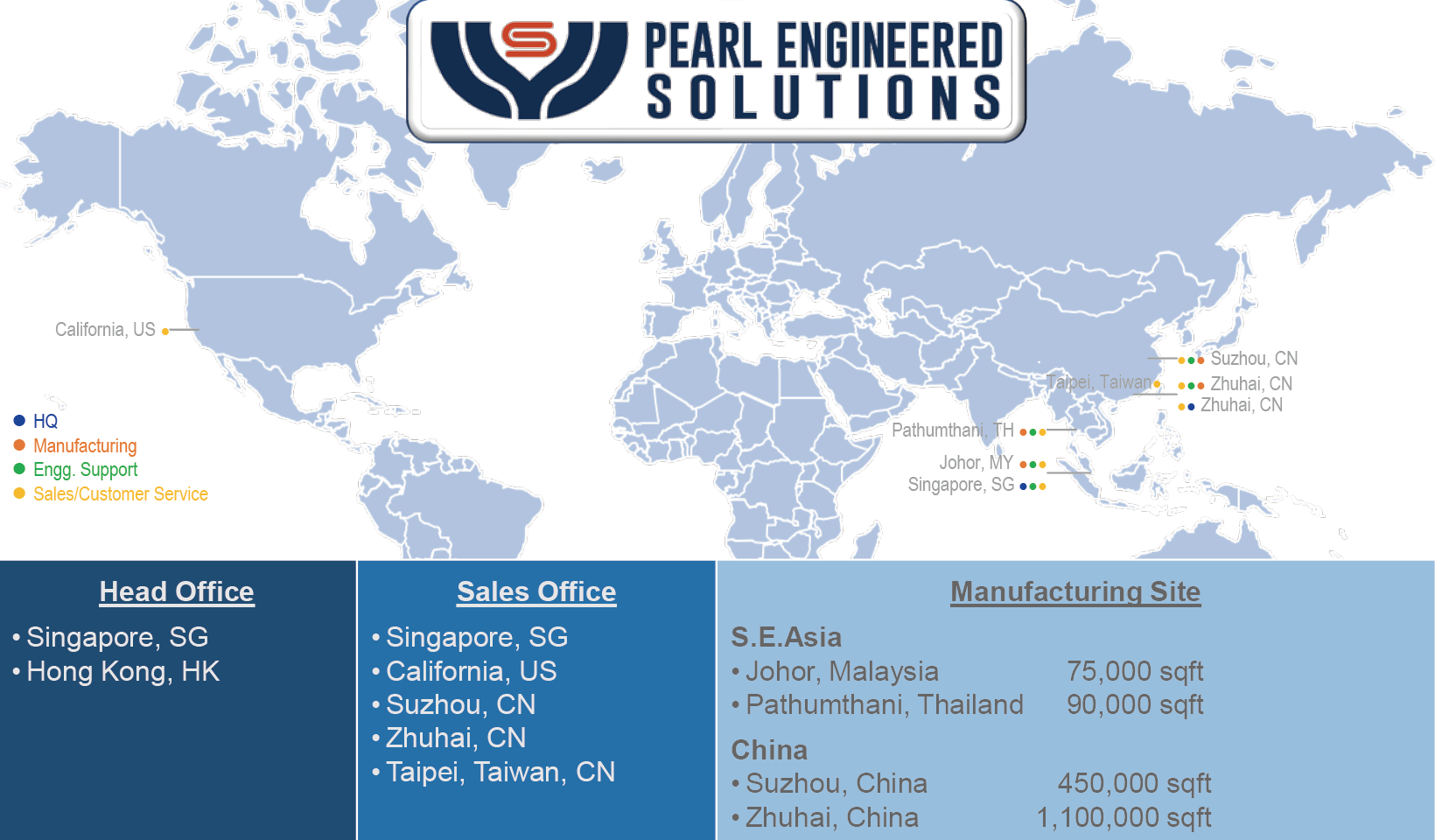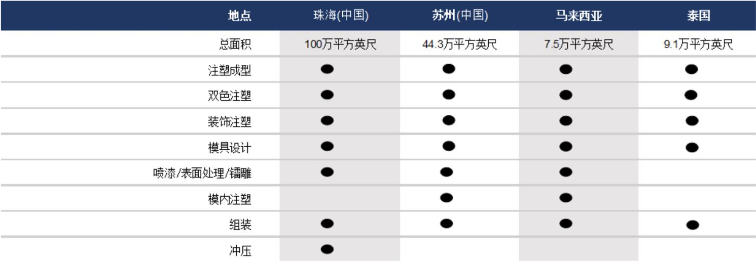 Broad Range of Capabilities underpin highly scalable manufacturing support across four (4) sites in Asia. 1.6 Million ft2 Combined Production Area