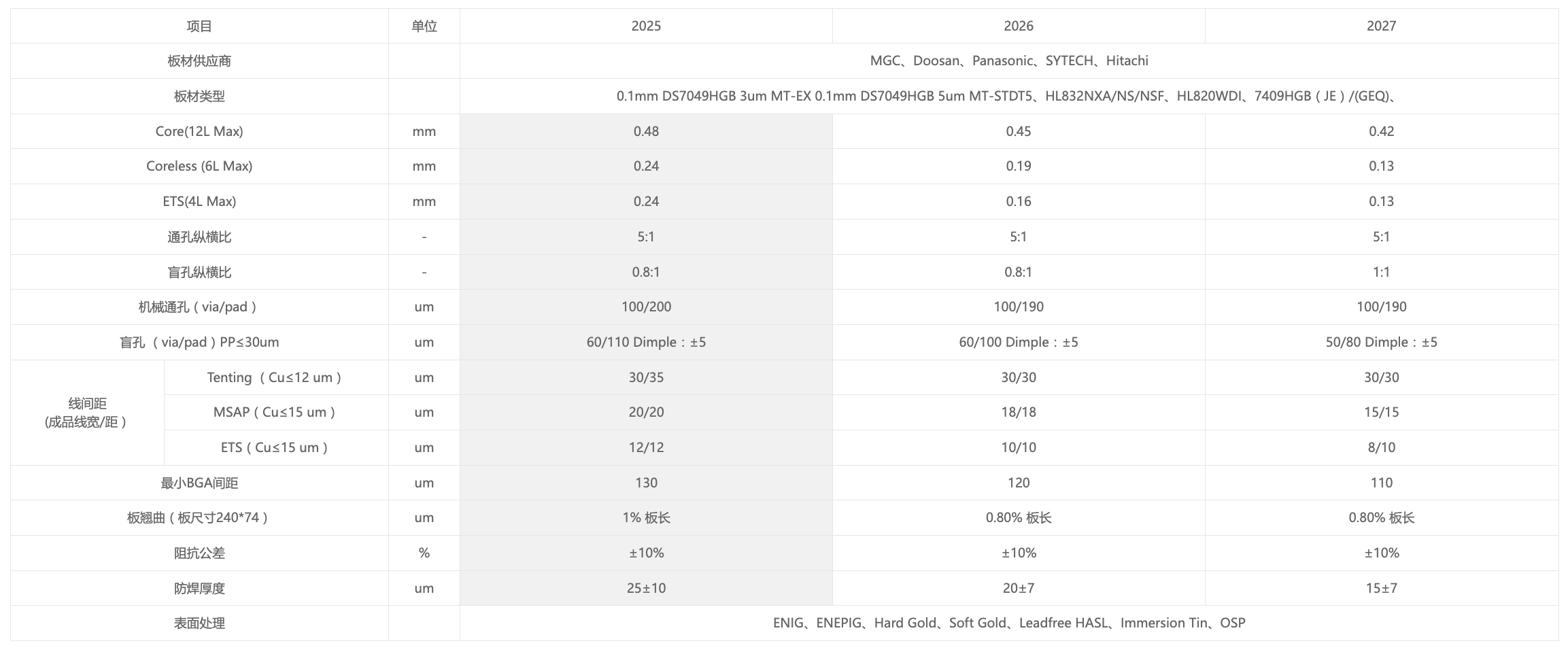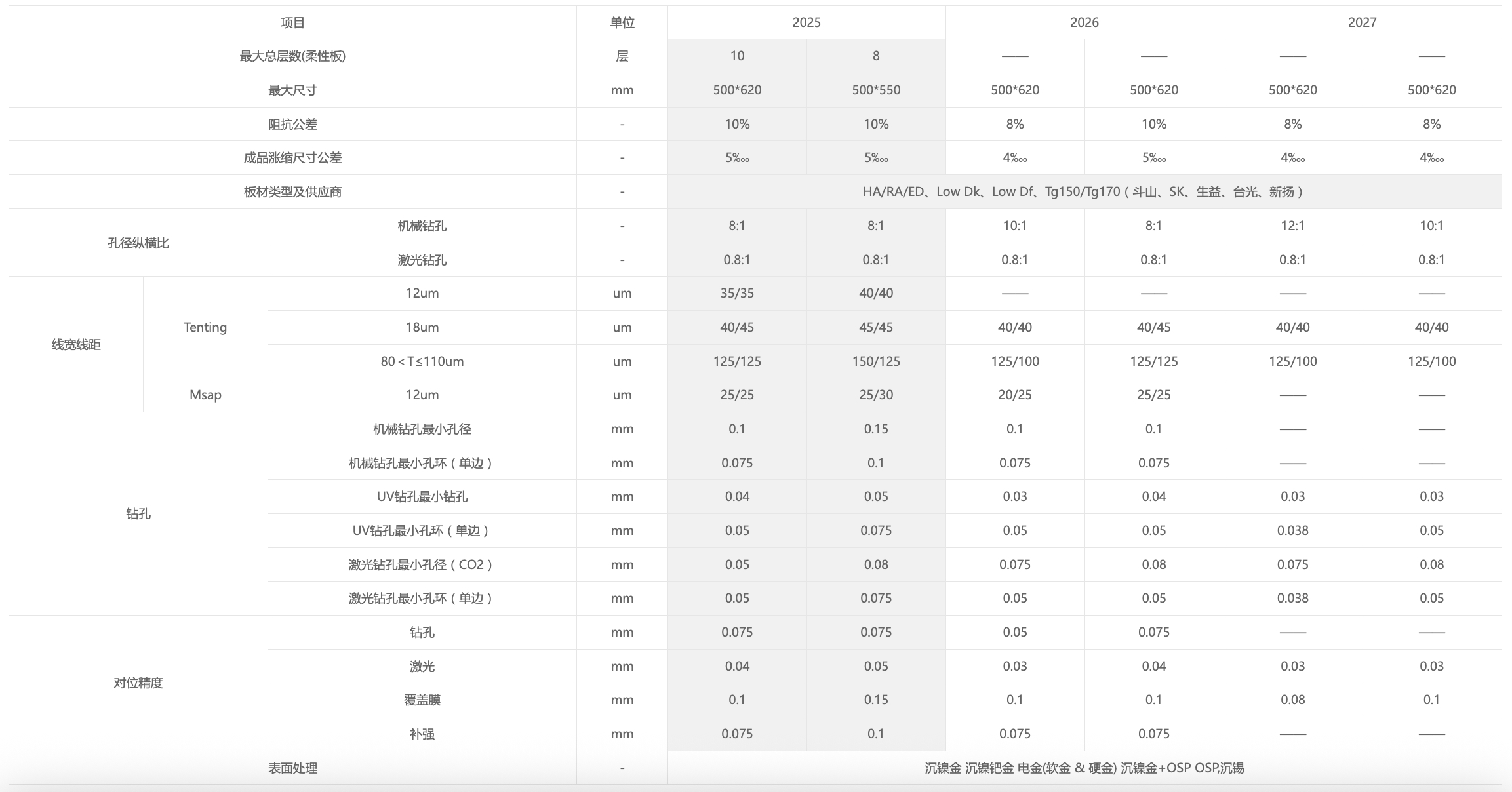 PCB電路板解決方案製程能力